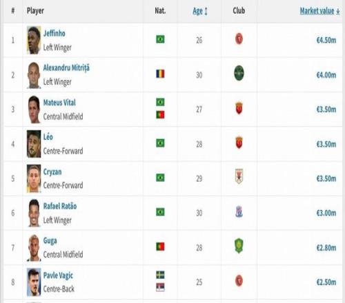 而与马克塔-盖伊并列第8的仍为辽宁铁人的外援,瑞典中卫瓦吉奇,德转身价250万欧。
